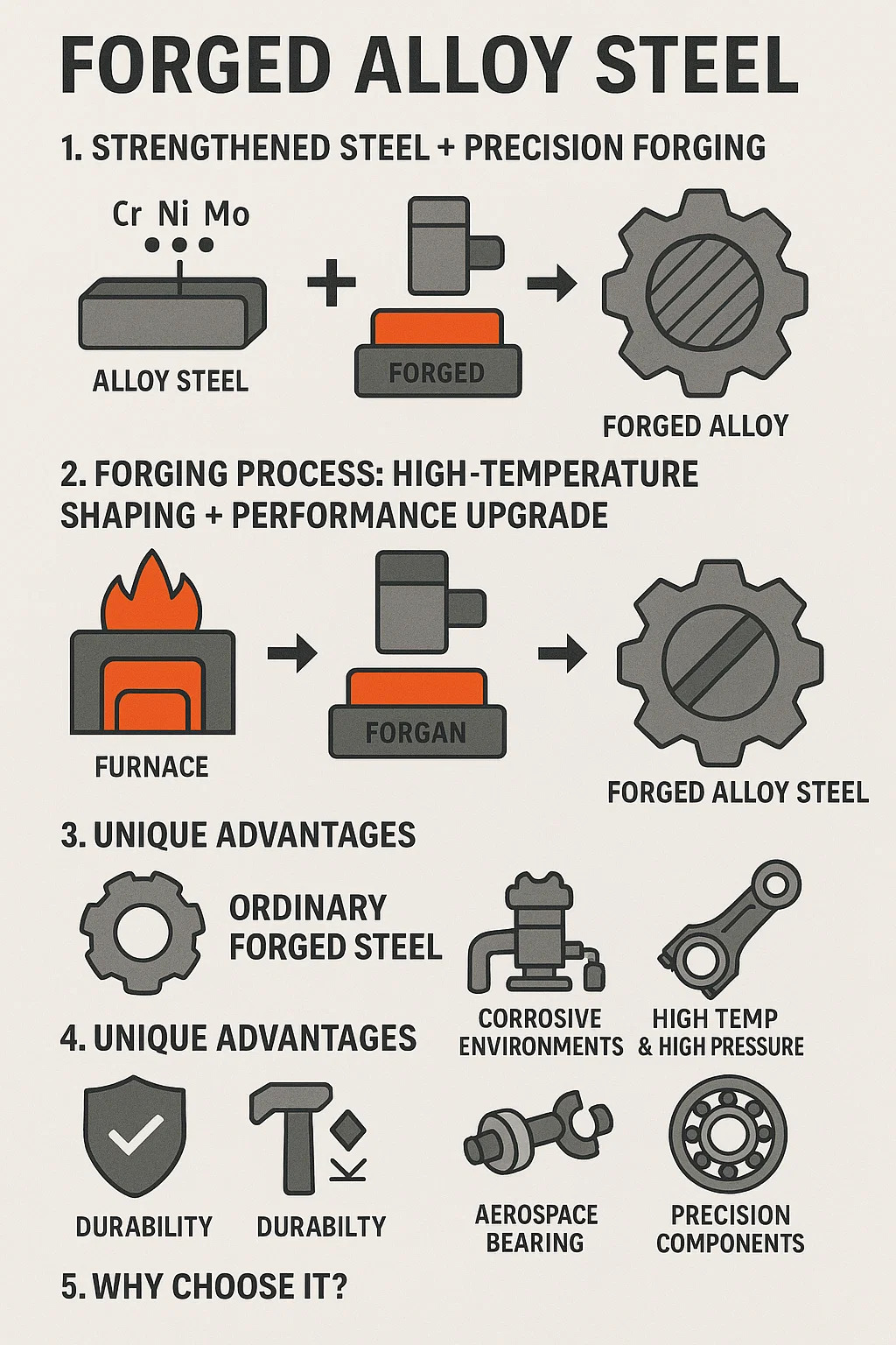 Kovácsolás: Az ötvözött acél tuskót magas hőmérsékletre (körülbelül 1100 ℃) hevítik, és többször kalapálják (hasonlóan a kovácskovácsoláshoz).